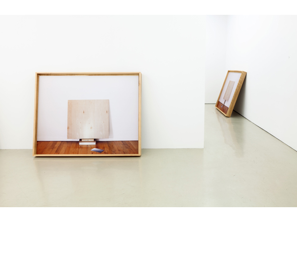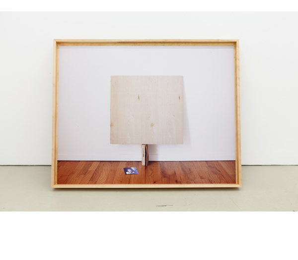 [uds-billboard name=”hewitt”]Leslie Hewitt knows how to do subtle. Her decision to place her large, wood-framed photographs decisively on the ground around the gallery at the Contemporary Art Museum St. Louis (CAMSTL), instead of on the wall, might not seem restrained. Displaying artwork on the floor is not new or even novel, but it is a way to declare that what you are looking at is not precious, is not above the viewer’s comprehension, and does not contain some kind of didactic truth. Right away, in the act of placing in lieu of hanging, we know that these photographs are not meant as straight documents, are not holistic records of truth, are not family heirlooms – are not photography as we might expect.Rather, the seven photographs from New York City-based Hewitt’s series Blue Skies, Warm Sunlight show us photographs which allude, photographs which prompt us toward reconsideration of everyday objects. What makes the photographs’ placement so understated is that the images are of books, photographs, and other objects stacked in various positions on a floor, leaning against a white wall themselves, echoing the frame. The position of each object changes slightly from one photograph to the next, a book going from horizontal to vertical, a photograph moving from the floor to atop a book, creating a tension among the images, almost as if they were mixed up film stills while also being reminiscent of the quiet and calm of a Dutch still life.