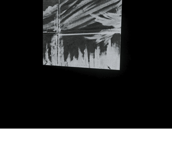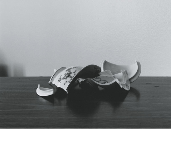 The other body of work that Hewitt exhibits is A Series of Projections, 12 black-and-white photographs hung grid-like, this time on a wall. Hewitt shot her photographs from projections she made onto her studio wall of overlapping images from two appropriated sources: images of nature from the Bettmann Archives and original shots of domestic interiors. The resulting photographs have a striking quality of being dramatically present, but also ghost-like and are hung to mimic projections themselves. There are about three stock images from which the rest are derived, creating a set of similar but different, almost-but-not-quite, photographs, analogous, Chief Curator Dominc Molon said in a preview of the works, to the filmic technique of the jump shot. As in Blue Skies, Warm Sunlight, there is the presence of the domestic (broken ceramics) and of the filmic (slightly changed positions of objects from image to image) which attest to Hewitt’s careful research, process, and choice of forms, which she has said are extremely important aspects of the work for her. Such attention to detail pays off in images which offer clarity in some space between photography, film, history, and sculpture.
